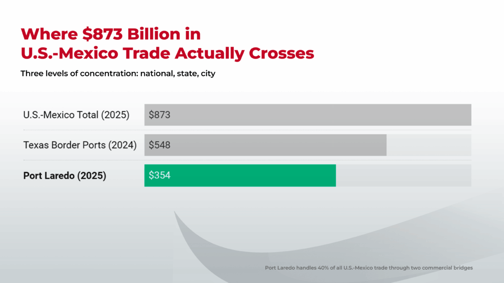40% of that trade crosses through a single city: Laredo, Texas.